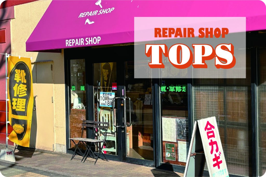 リペアショップ トップスは、靴修理、鞄や財布の修理、革製品のクレンジングと色の修繕と染め替え、傘修理、合鍵(複製)制作と純正鍵お取寄せの専門店です。
